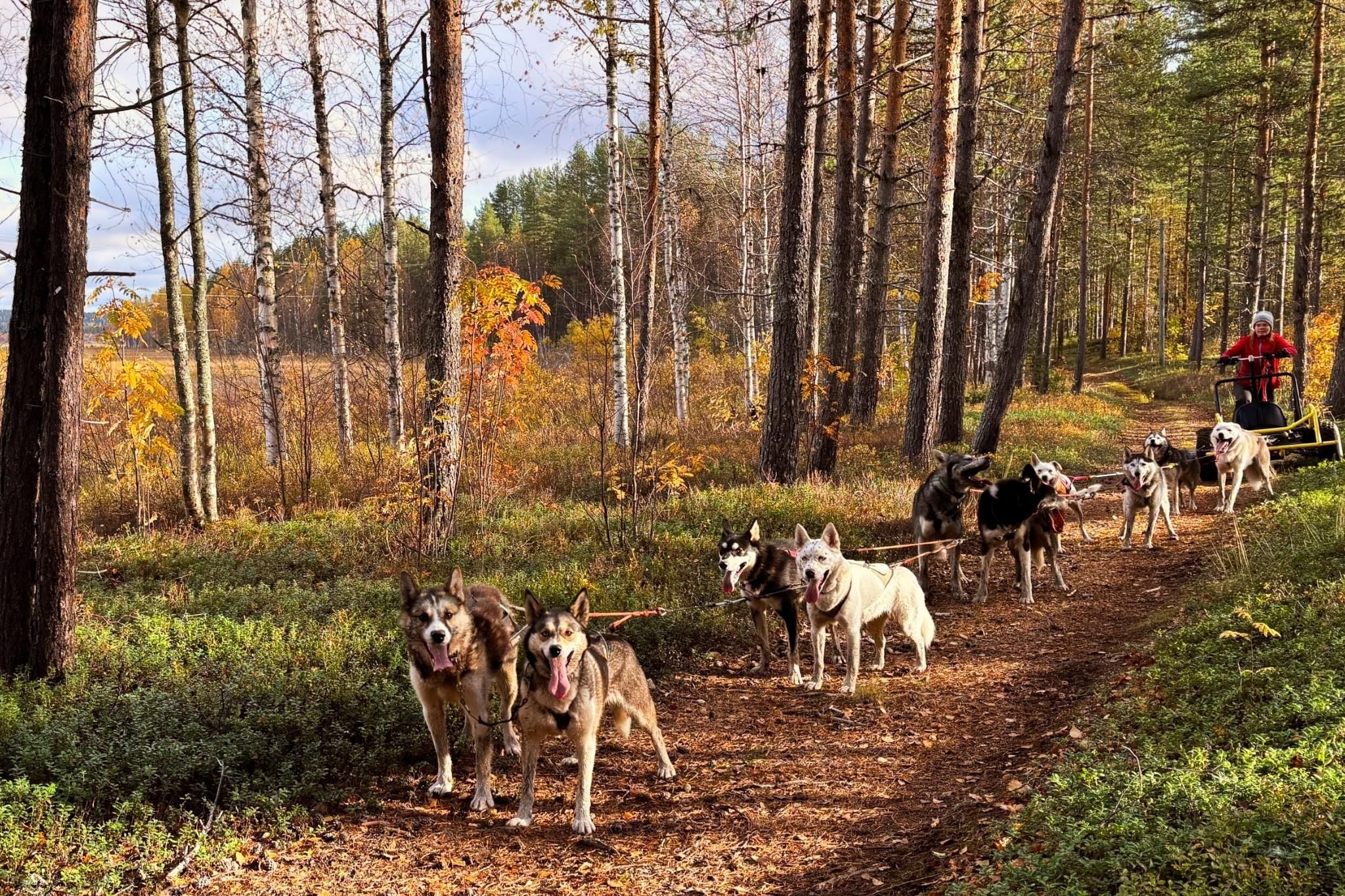 - 6–10 km Self-Driven Safari – Mush your own husky team through forest trails and autumn landscapes