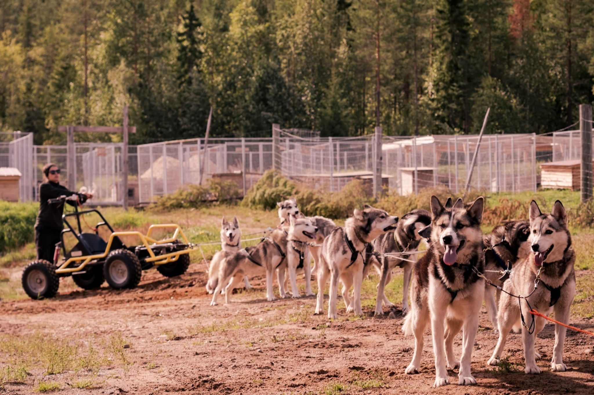 The husky safari is a true Lapland adventure — and in autumn, it’s even more magical. Instead of snowy trails, the huskies lead you across winding forest paths and glowing autumn landscapes bursting with reds, yellows, and golds.