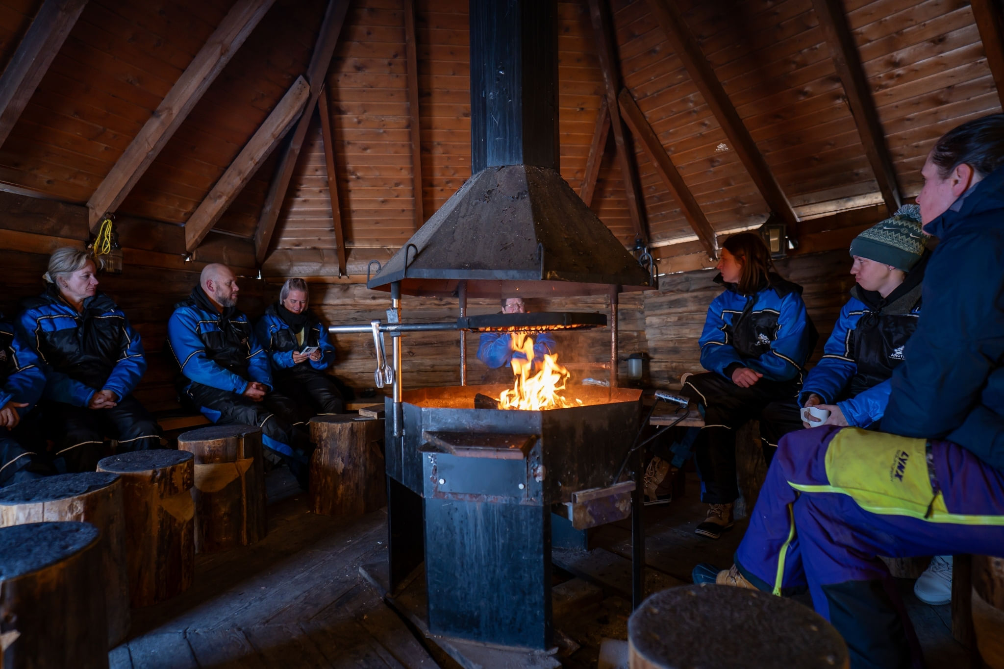 After the safari, you’ll gather around the fire to enjoy hot drinks and a seasonal barbecue. This is your chance to relax, take photos, and learn more about life with huskies in Lapland.