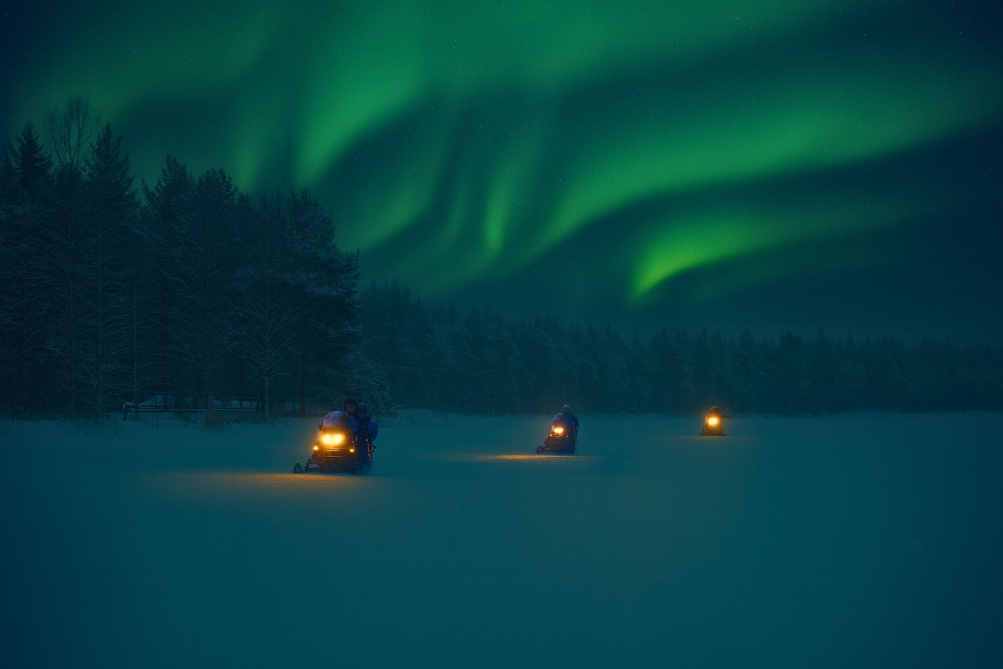 Ride brand-new 2025 snowmobiles across private forest & tundra trails under Lapland’s Arctic night sky. Small groups, expert guides, brand-new 2025 luxury 4×4 vans, brand-new gear, and a cozy BBQ — plus a chance to see the Northern Lights