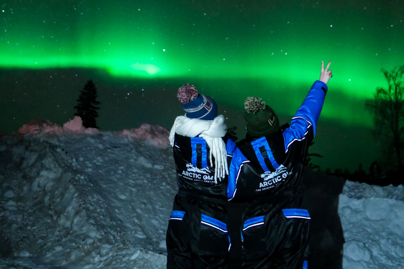 Stay warm in Rovaniemi with Arctic GM’s Expedition Shield — durable winter overalls designed as an extra top layer for Arctic conditions. Free for our tour guests, also available for rental